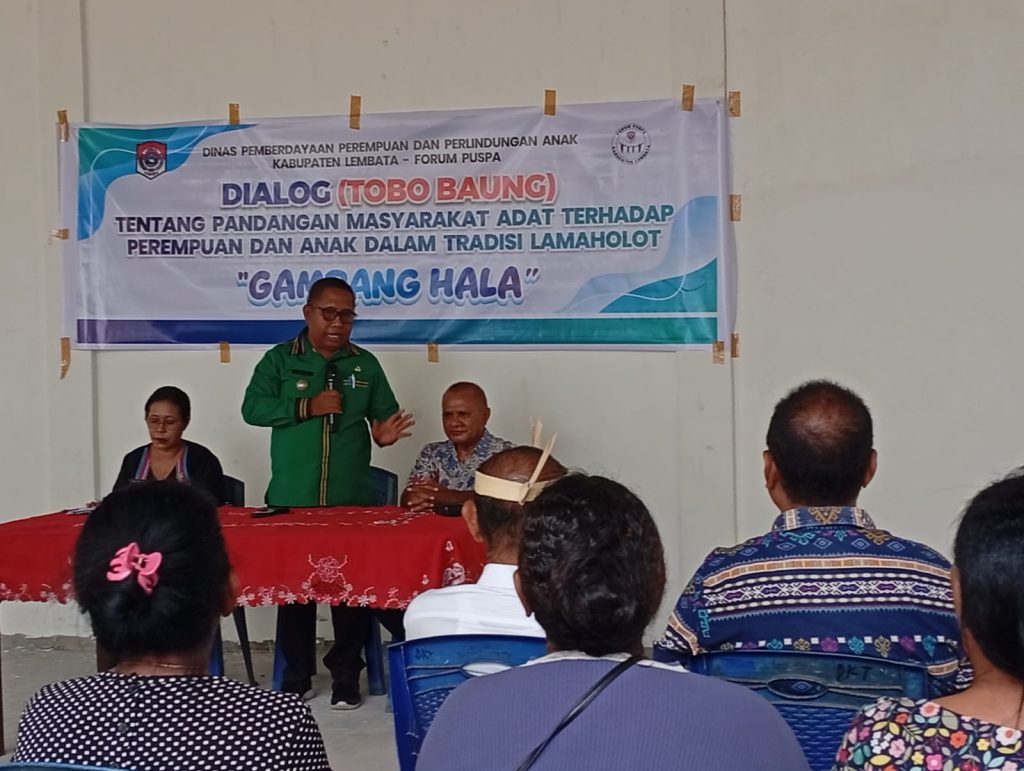 Mulanya para tokoh adat, pemerintah desa dan tokoh perempuan diberi gambaran tentang tingkat kekerasan terhadap perempuan dan anak di Kabupaten Lembata. Sekteraris Dinas P2PA, Natalisia Buyanaya memaparkan di Kabupaten Lembata tahun 2023, terjadi 101 kekerasan, tahun 2024 sebanyak 63 dan data terakhir hingga Juni 2025 terdapat 36 kasus. Moderator, Linus Beseng lalu membuka diskusi dengan beberapa pertanyaan tentang pandangan masyarakat terhadap perempuan dan anak dalam budaya. Peserta dibagi dalam tiga kelompok: Lewuhala, Lewotolok dan Lewulun).