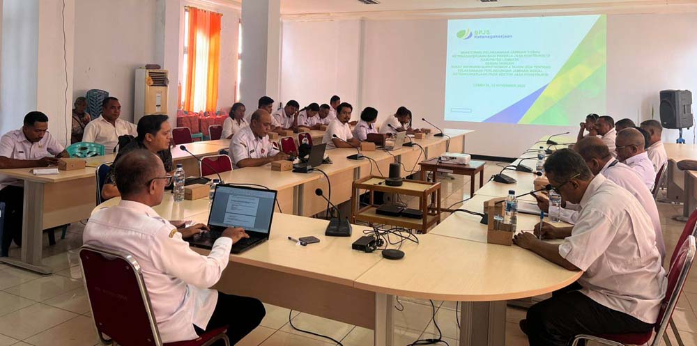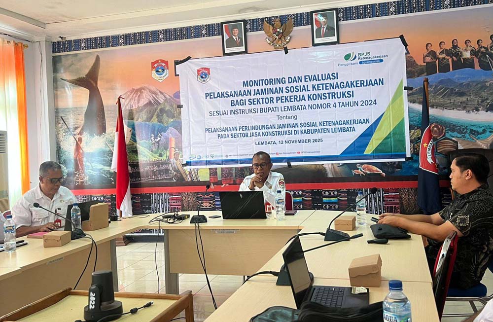 Aksinews.id/Lewoleba, 12 November 2025 — Pemerintah Kabupaten Lembata bersama BPJS Ketenagakerjaan menggelar Rapat Monitoring dan Evaluasi Pelaksanaan Jaminan Sosial Ketenagakerjaan bagi Pekerja Jasa Konstruksi, sesuai dengan Instruksi Bupati Lembata Nomor 4 Tahun 2024 tentang Pelaksanaan Perlindungan Jaminan Sosial Ketenagakerjaan pada Sektor Jasa Konstruksi di Kabupaten Lembata. Kegiatan ini berlangsung di ruang rapat Bupati Kabupaten Lembata dan dihadiri oleh sejumlah pimpinan perangkat daerah serta unsur teknis terkait.