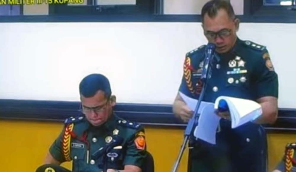 “Pidana tambahan berupa pemecatan dari dinas militer, cq TNI Angkatan Darat,” tegas Oditur Militer Mayor Masinton saat membacakan tuntutan.